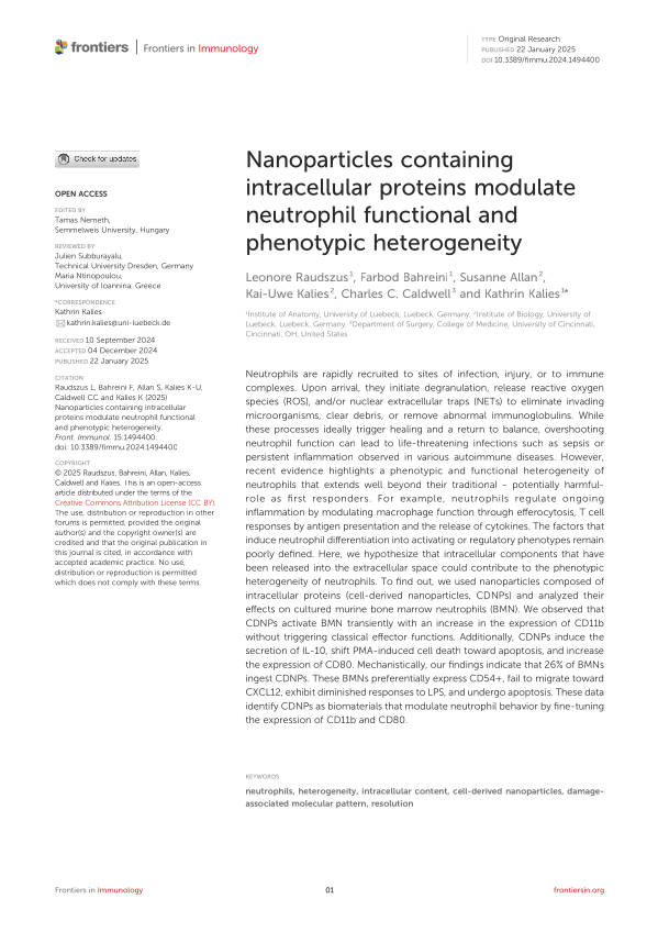 Nanoparticles containing intracellular proteins modulate neutrophil functional and phenotypic heterogeneity